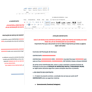 Todas as planilhas são editáveis no Google Planilhas, os modelos de briefing e contrato no Google Docs, a proposta comercial e o são editáveis no Google apresentações ou power point e o arquivo de organização de demandas é editável no Trello.